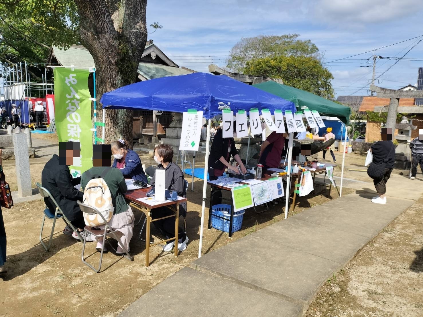 しょうわ会は、『みんなの保健室』による健康相談と『リハビリ体験コーナー』を設けさせていただきました。『みんなの保健室』では、大人の方の参加が多く、血圧測定など行いましたが皆さまの健康への意識の高さを感じることができました。『リハビリ体験コーナー』では、お祭りに来ていた多くの子どもたちに参加していただきました。ご家族での参加も多く、お祭りと相まってしょうわ会のブースも大変盛況でした。