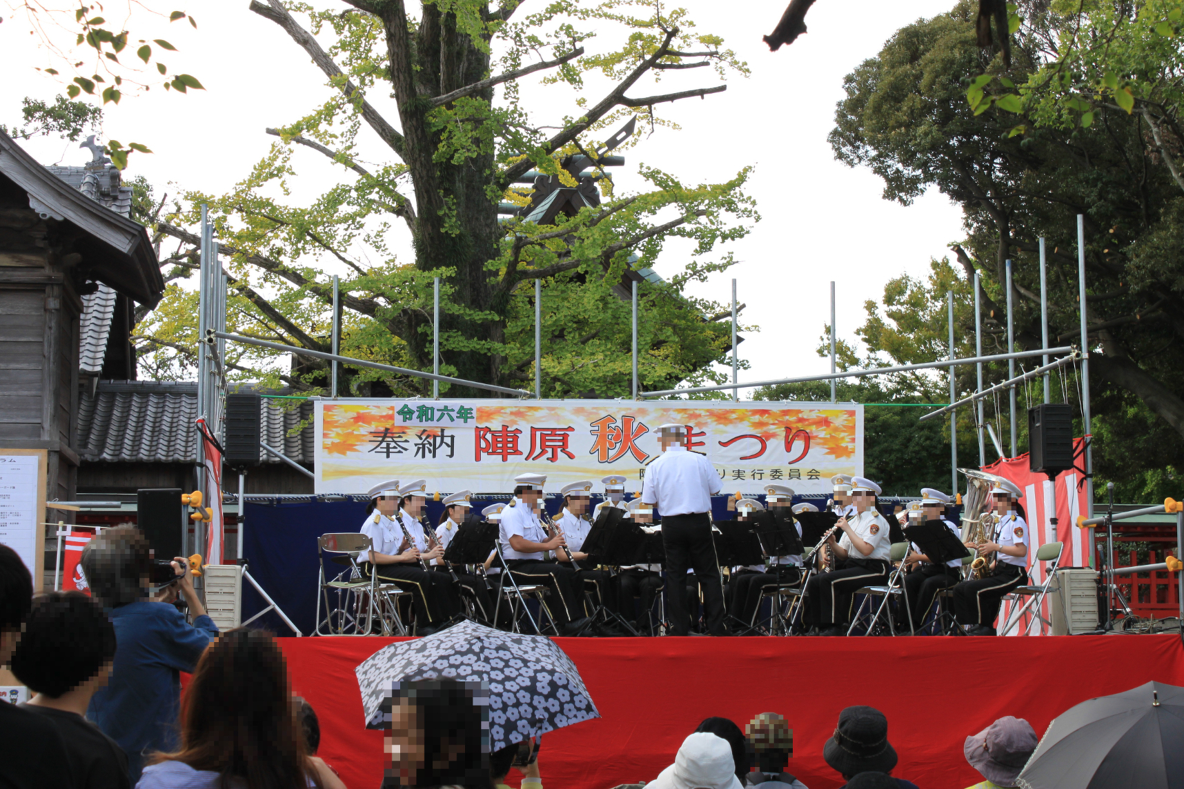 3号線沿いにあります旗頭神社において、『2024陣原秋まつり』が開催されました。午前中は餅つきが行われ、午後は特設ステージで催し物が多数行われました。お昼頃には、北九州市消防音楽隊による演奏が行われており、大変楽しい賑やかな雰囲気の中、参加されている皆さまの笑顔がとても印象的でした。