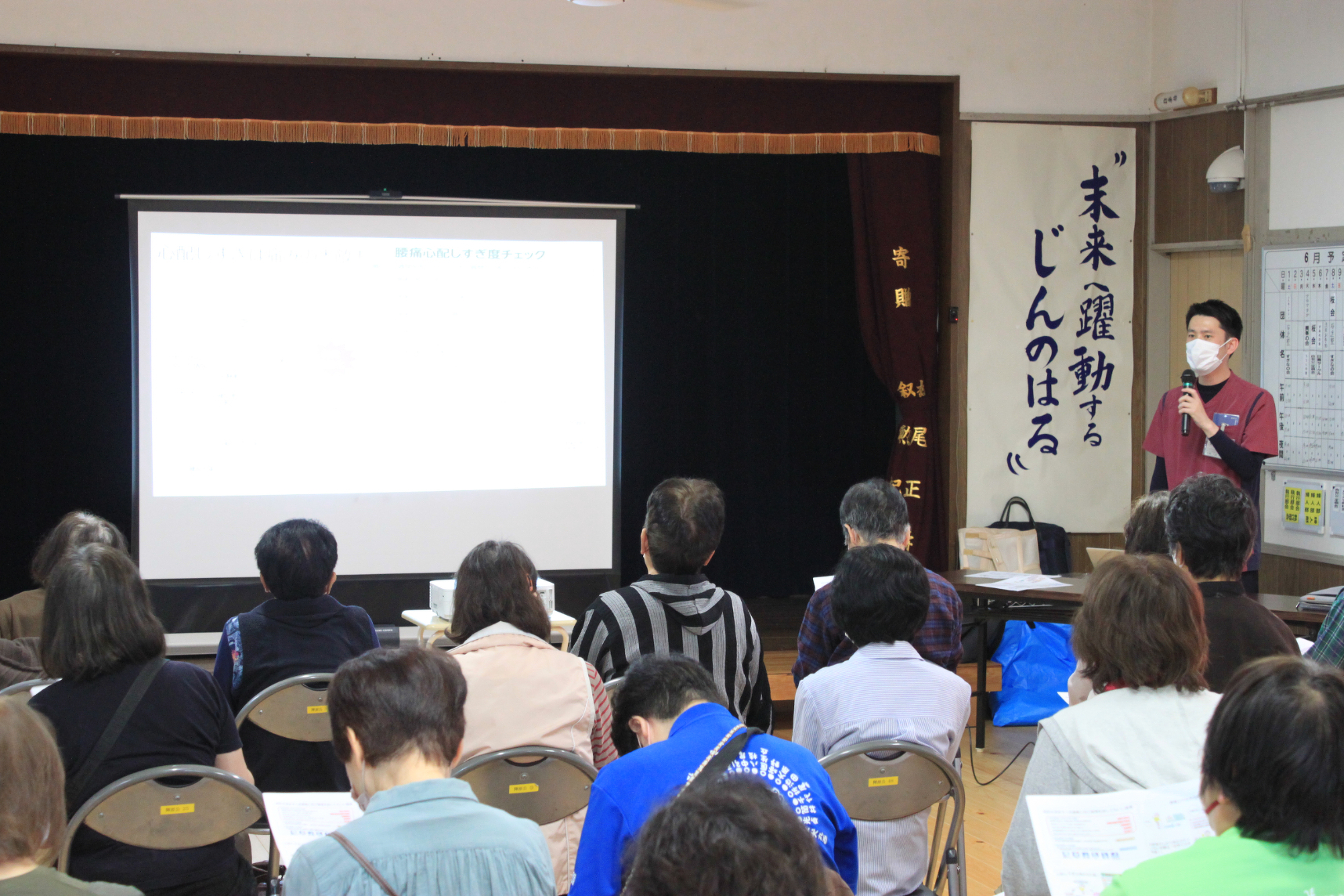 陣原地区社会福祉協議会主催の陣原ふれあいサロンに講師として参加しました 2024.06.01(土) 『腰痛を防ぐための身体づくりと生活のコツ』をテーマに、リハビリテーション科の理学療法士が講師を務めさせていただきました。 今回、講演させていただいたふれあいサロンでは、30名ほどの方にご参加いただき、みなさま熱心に耳を傾けられている様子が印象的でした。最後はたくさんの質問を頂き、会場はとても活気のある雰囲気に包まれており、しょうわ会としましても、たくさんの元気をいただきました。