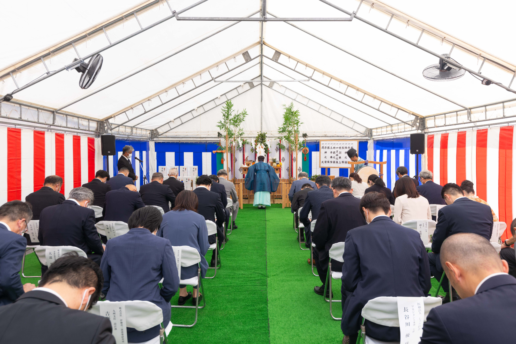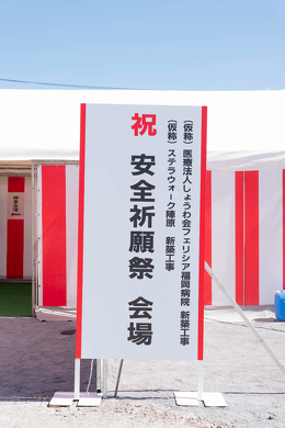 安全祈願祭が行われました 2023.08.10(木) 2023年8月4日 (仮称)フェリシア福岡病院の安全祈願祭が、日峯神社宮司さんにより執り行われました。 当日は、天候に恵まれた中、建設予定地にて、しょうわ会関係者のほか、設計・施工業者、地域の自治区会など、多くの皆様にご参列いただき、工事の安全を祈願致しました。