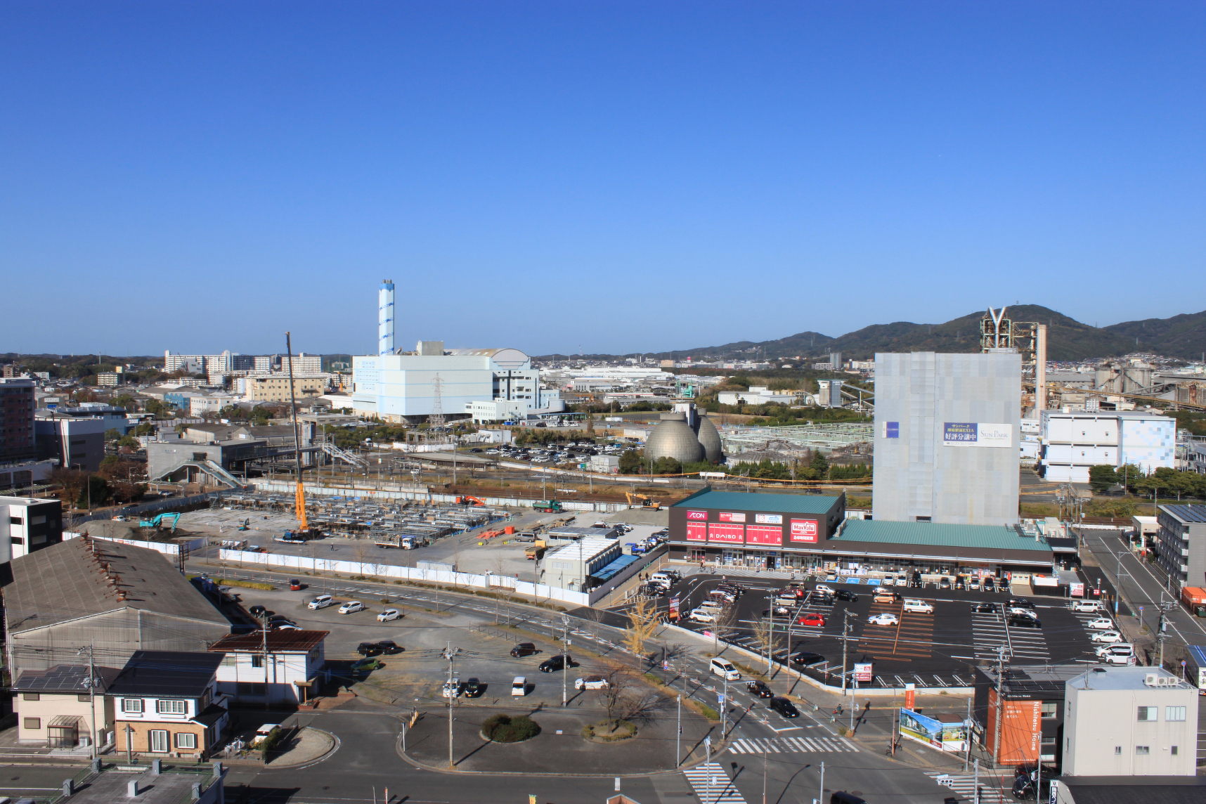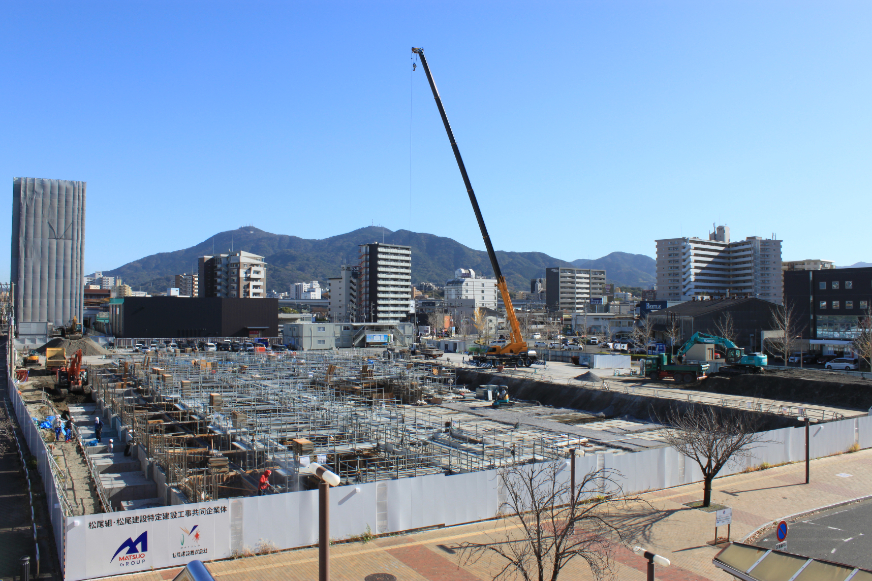 大英産業様の「サンパーク陣原駅前EXIA」は、現在12階エリアまで建築が進んでいるようです。