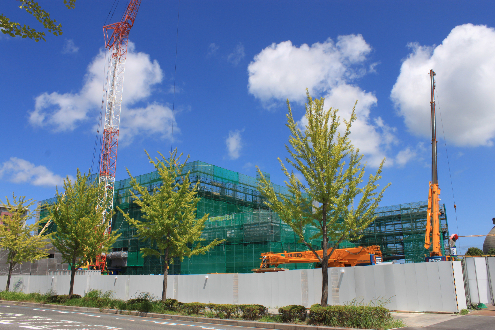 2024年7月29日現在の様子 2024.07.30(火) フェリシア福岡病院の建築工事は、7月中旬より5階躯体工事に入りました。建物の外観が出来上がるのはまだ先ですが、全体像が見え始めました。想像していたよりも大きく、存在感があります。完成が待ち遠しいです。 先週、福岡県の梅雨明けが発表されました。これからますます厳しい暑さとなりますが、梅雨の時期からすでに気温が30℃を超える日が続いています。地域の皆さま、体調管理には充分お気を付けください。そして、工事現場の皆さま、猛暑の中いつもありがとうございます。