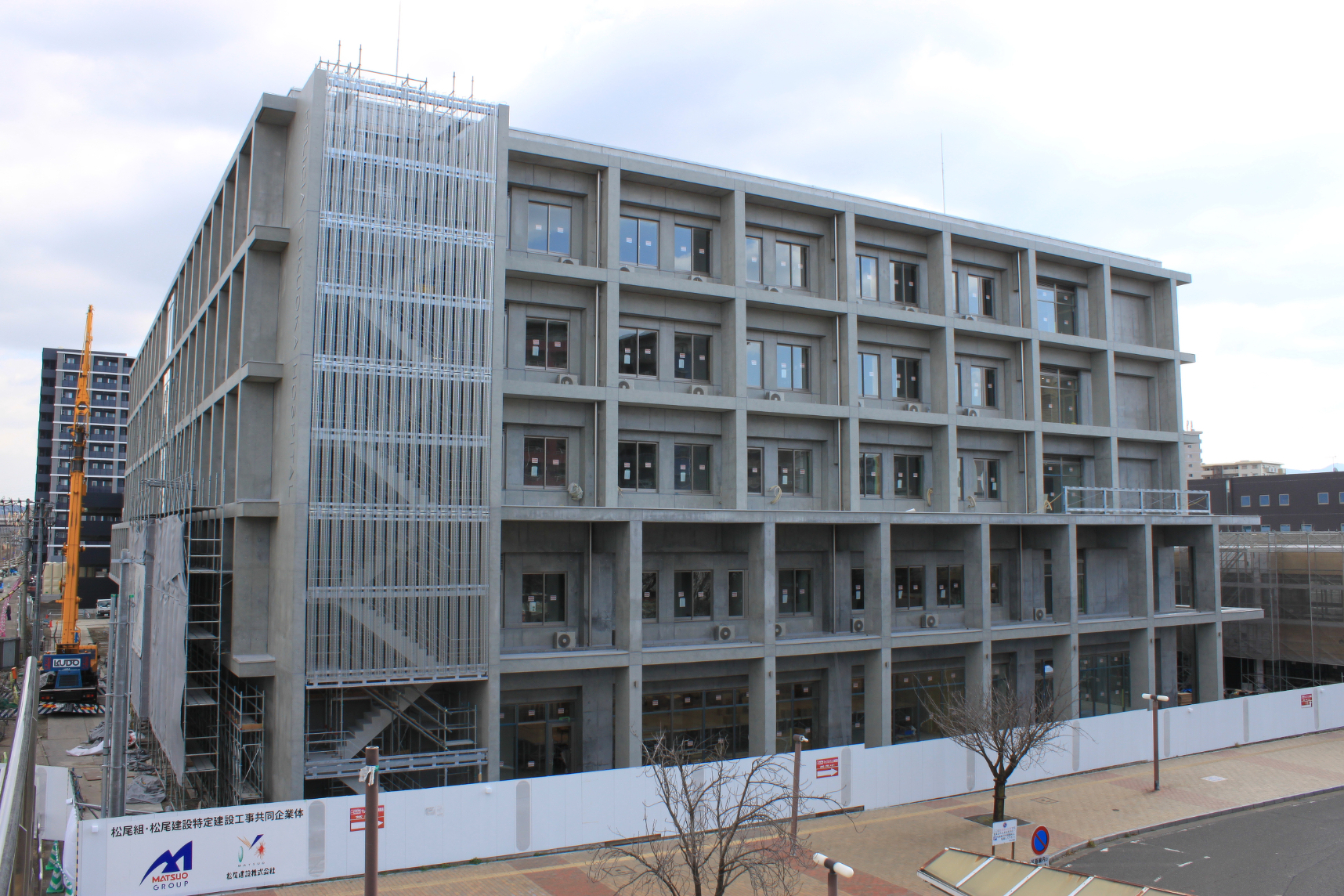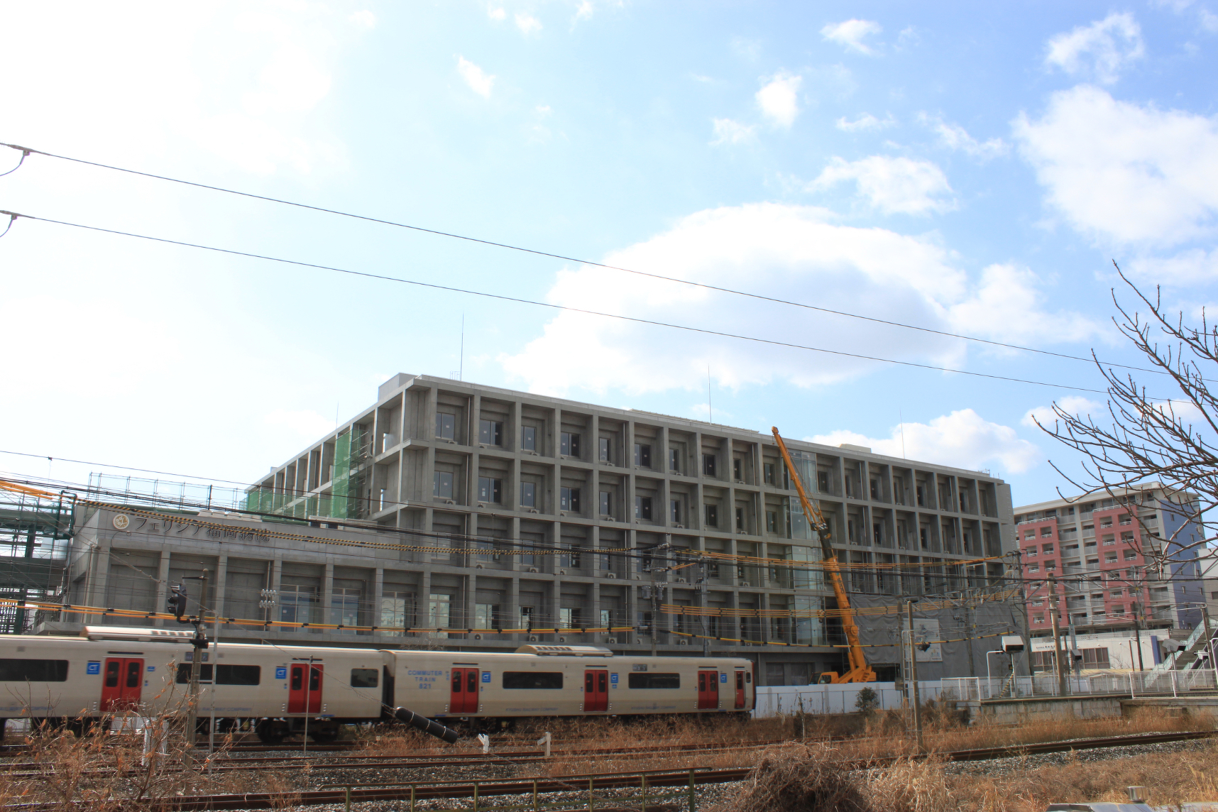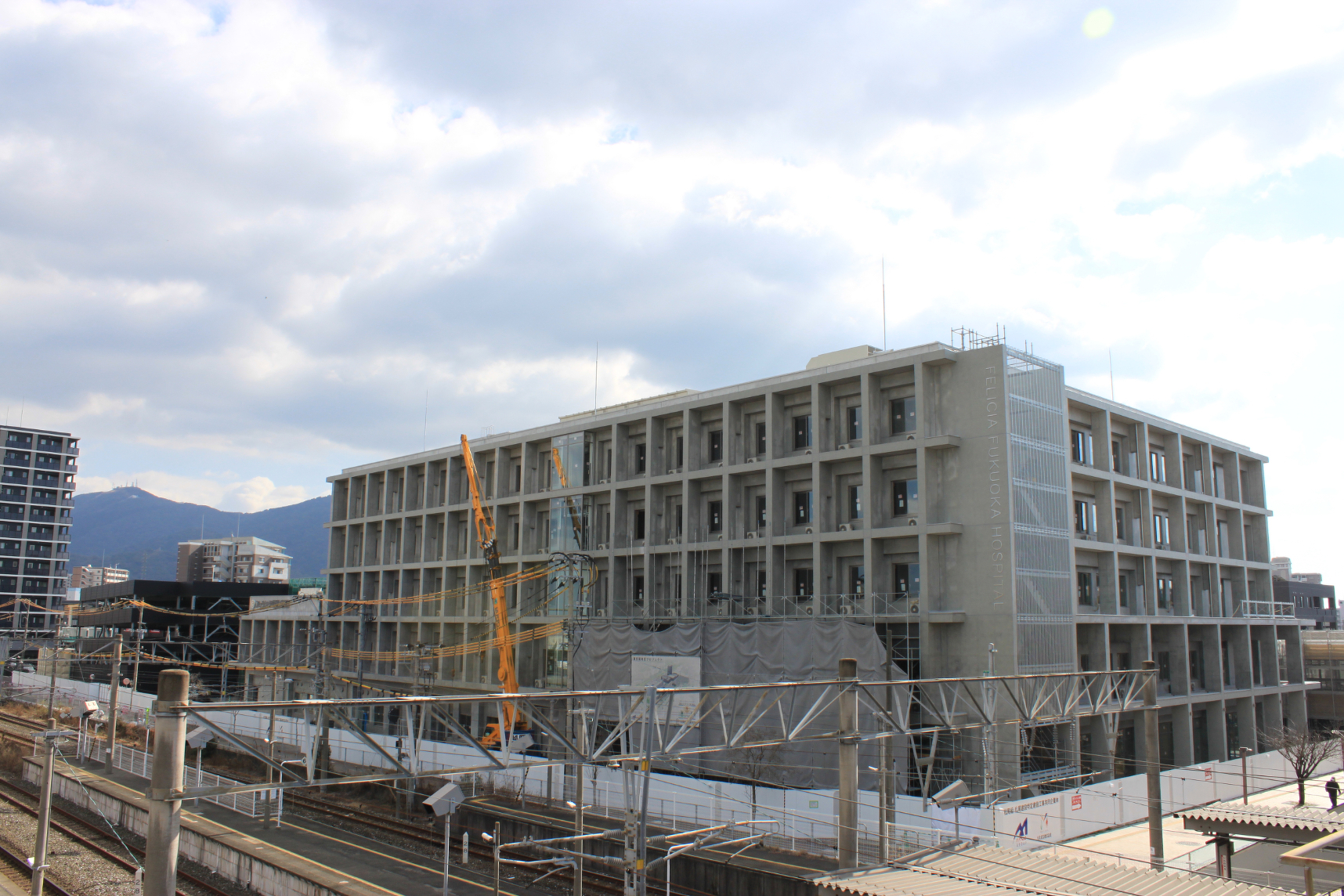 2025年1月30日現在の様子 2025.01.30(木) フェリシア福岡病院の建設工事の近況報告です。現在、ほとんどの足場が解体され、外観の全容が確認できるようになりました。フェリシア福岡病院の外部サインは、設置する全4カ所のうち、南面屋上に加え、北面東側にも設置されました。残すは、西面2階庇上部のみとなりました。よく見ると、北面西側の壁面には、縦型の外部サインが設置されています。ご興味がございましたら、ぜひ現地でご覧いただけますとうれしいです。
